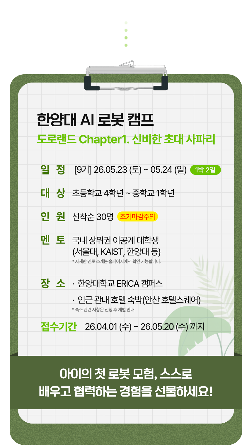[9기 : 26. 05. 23 (토) ~ 24 (일)] CHAPTER 1 ‘신비한 초대 사파리’ AI 로봇 캠프
